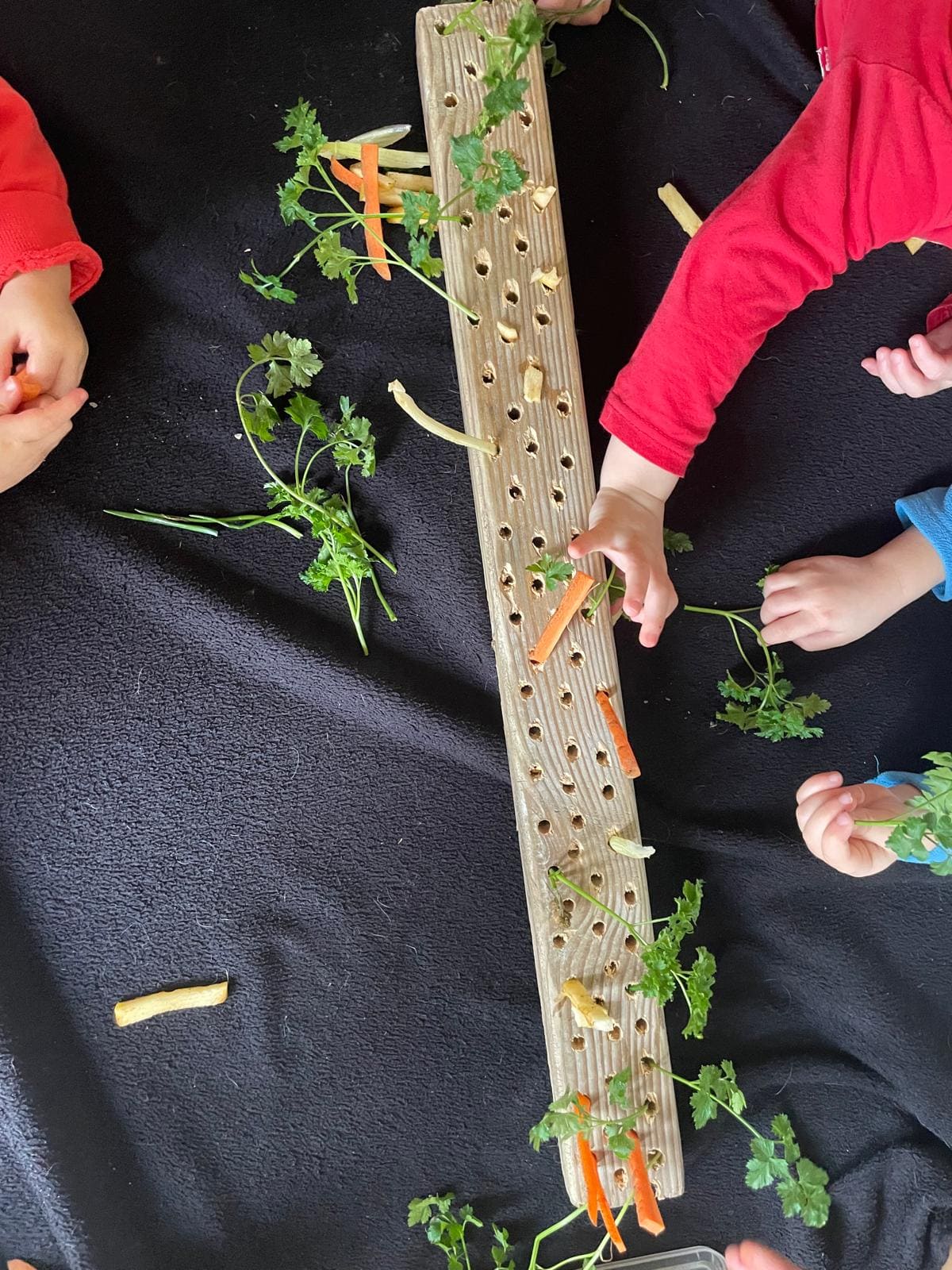 En fonction des envies et besoins des enfants, nous accueillons des intervenants extérieurs pour animer des ateliers. Par exemple l’association « Vivre Montessori Nantes » est venu pour un atelier ainsi qu’ « Eveil et sens » et « Pattes poils et plumes »