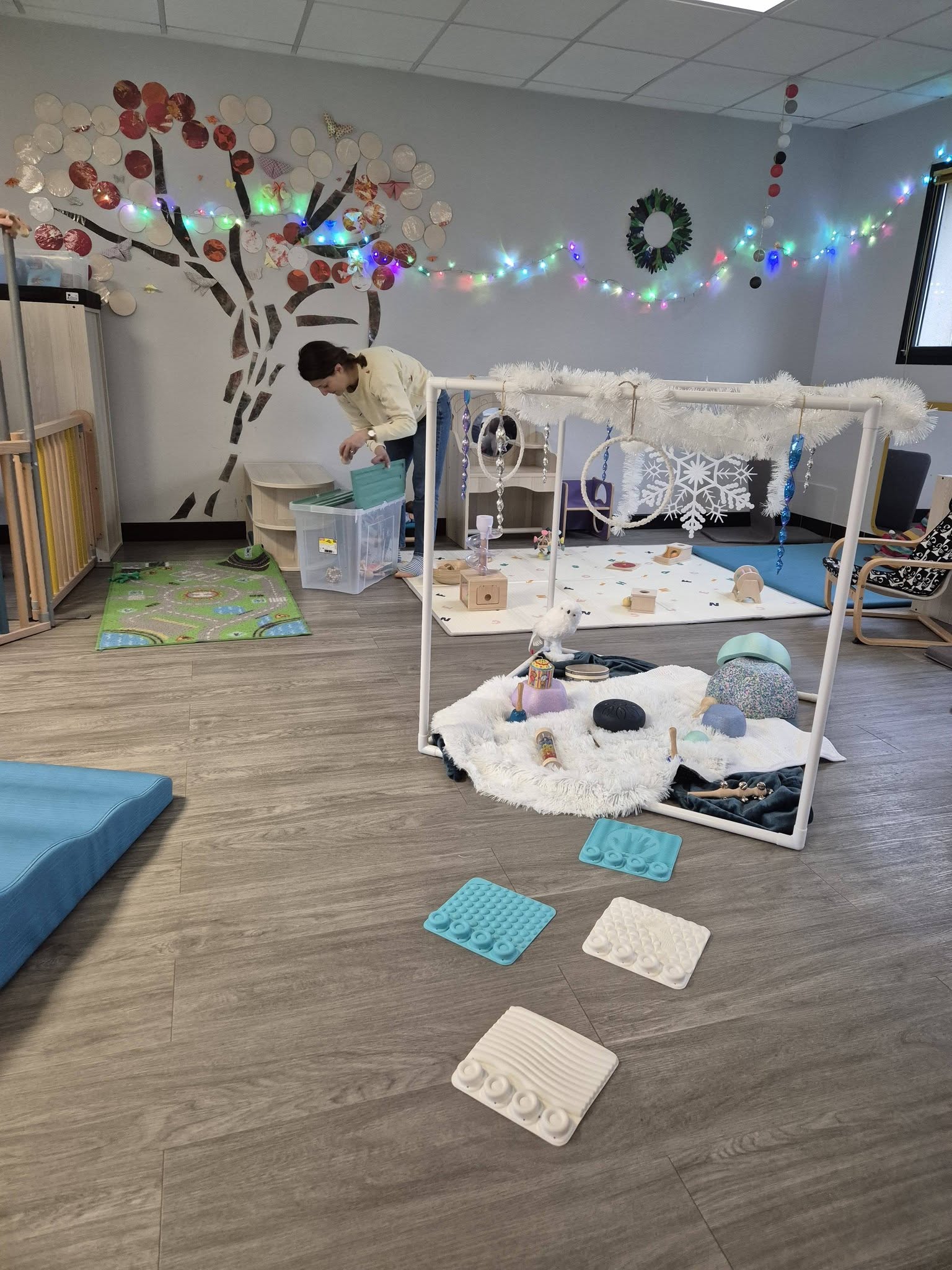 • Avec Lucile d’Eveil et Sens , les enfants de la micro-crèche de Pont Béranger découvre l’atelier snoezelen !